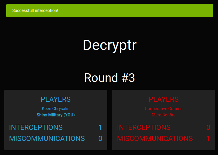 A digital port of the board game Decrypto which I built to play while social distancing.