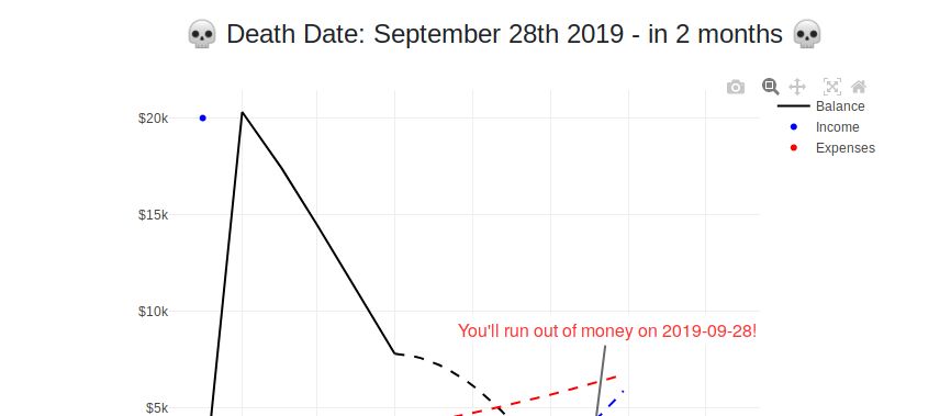 A little tool that connected to your bank account via Plaid and enabled you to explore different fiscal scenarios (like calculating the amount of runway you have left under different revenue growth assumptions). Not as deserving of a post-mortem as Sponsorhub, but I should do it anyway.