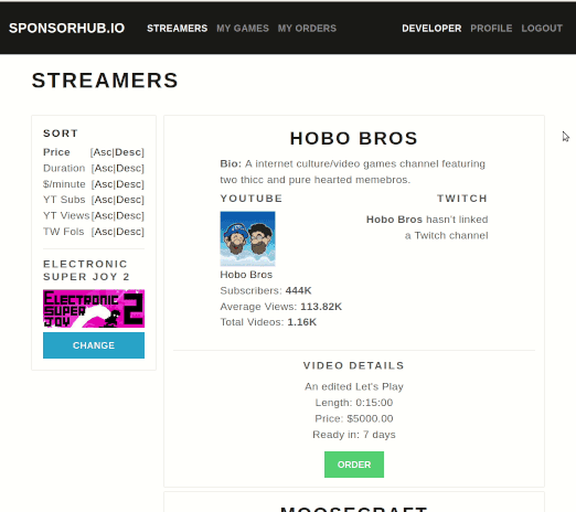 A marketplace for game developers to connect with streamers and youtubers to produce sponsored streams. Now sadly defunct - I should really do a post-mortem write up at some point.